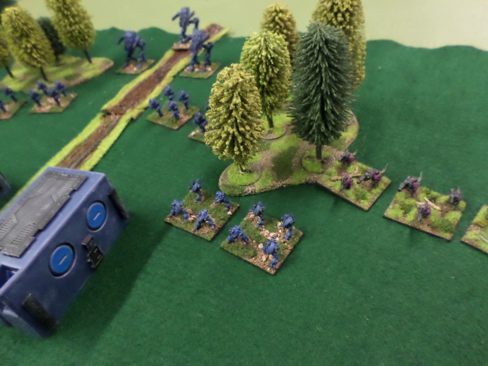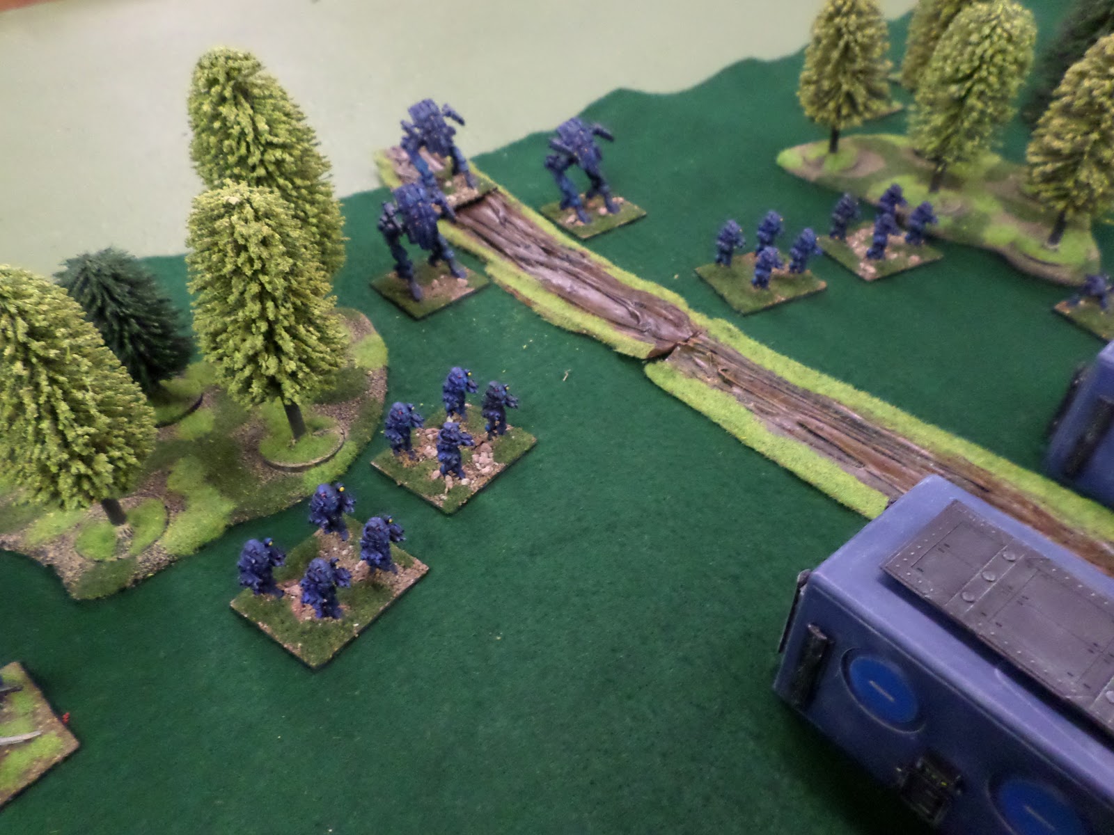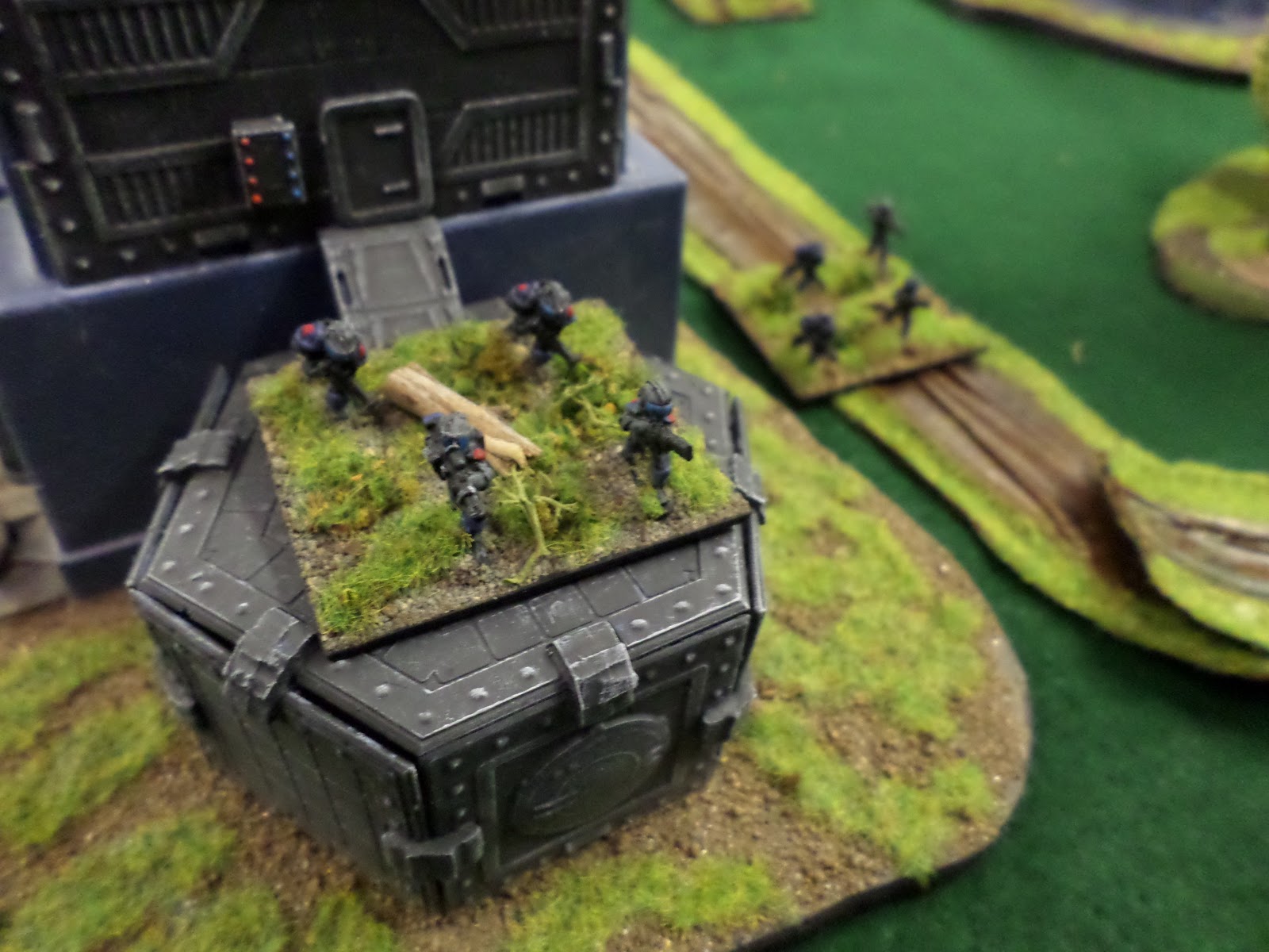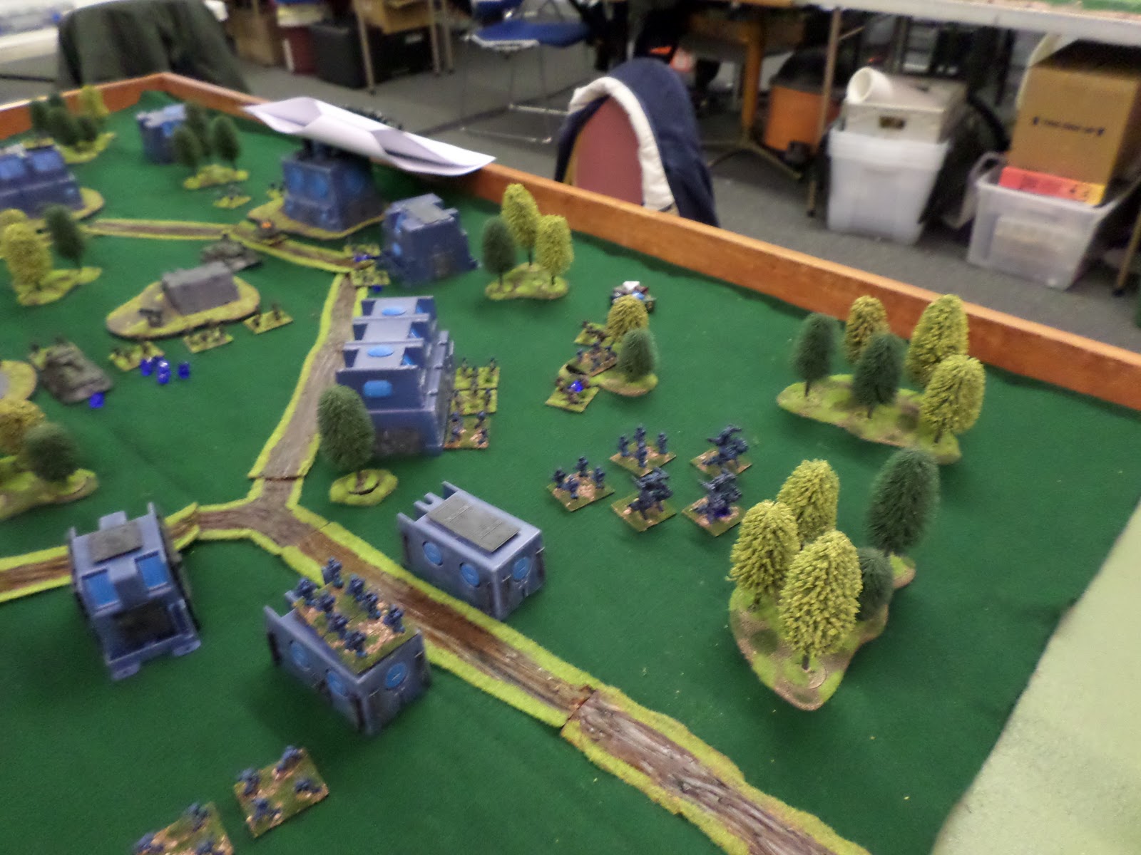 Last night saw my first public play test game of Trilaterum, my new 15mm scifi game. Miniatures used will be Stan Johansen’s Star Armor Line and Blue Moon Miniatures 15mm Aliens Lines. Follow the link to join the Facebook group where I will be discussing the upcoming rules set. I learned a lot during the game about what works and does not work. I will be reworking activation and coherency as that seemed to bring up lots of questions.