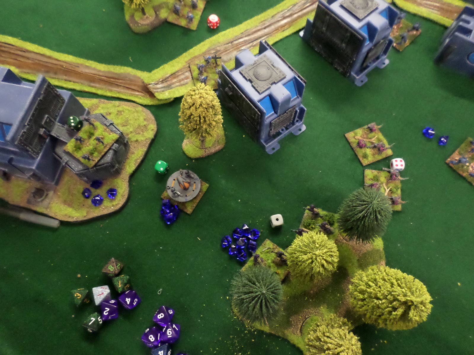 Another thing we will be consolidating is weapons so units have a single shoot line instead of multiple weapons. The modified exploding dice mechanic seemed to go over well. Its modified in the sense that if you roll a 1 in the subsequent rolls you get to roll on the OH CRAP table. One amusing instance was as the Draconid player had 7 hits on a squad and the table inadvertently had him resolve the hits on the nearest friendly stand! FRIENDLY FIRE!!!!